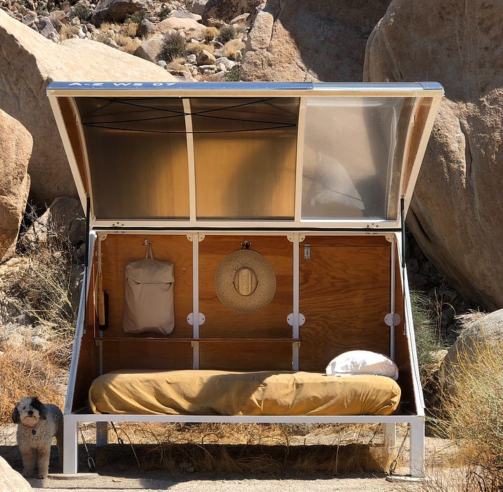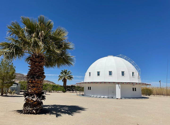 While our nights were spent in quiet reverence, our days were filled with adventure. Having visited Joshua Tree many times before, I naturally fell into the role of tour guide, curating an itinerary of must-see highlights. We lucked out that our visit coincided with one of High Desert Test Sites monthly tours, an absolute must-do for anyone interested in art and desert living. Of course, we also hiked through Joshua Tree National Park, paid a visit to the Noah Purifoy Outdoor Desert Museum, visited the sonic wonder of the Integratron, followed by lunch at my favorite roadside café, La Copine.