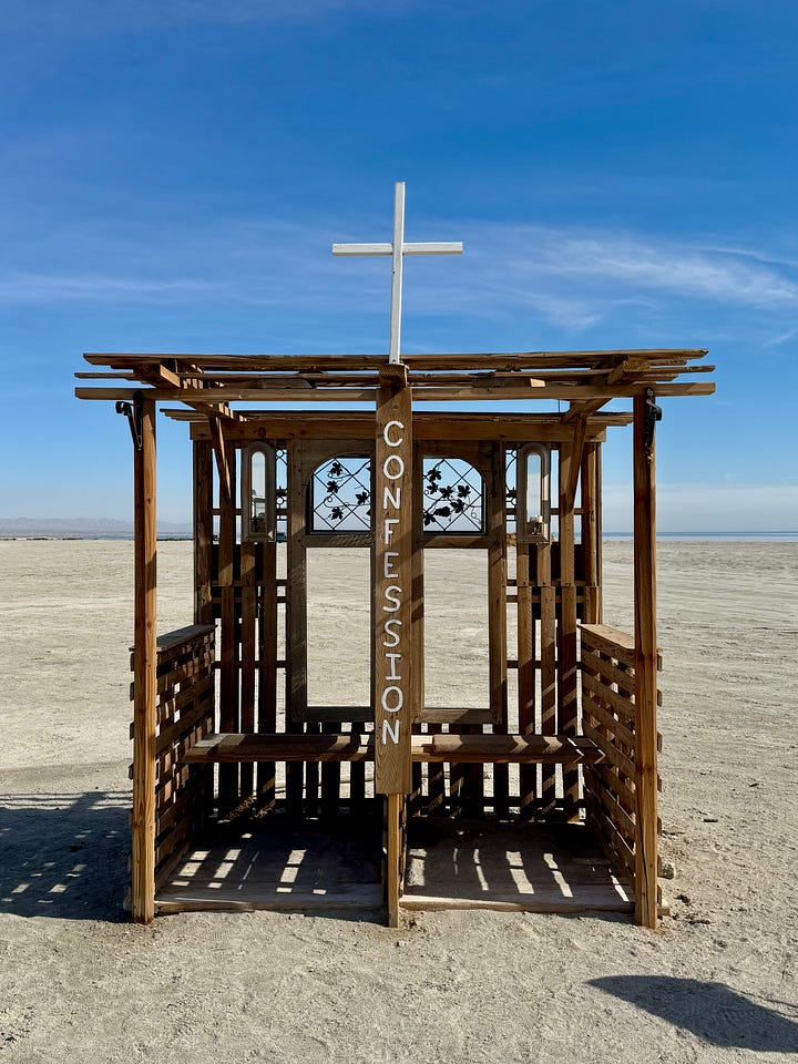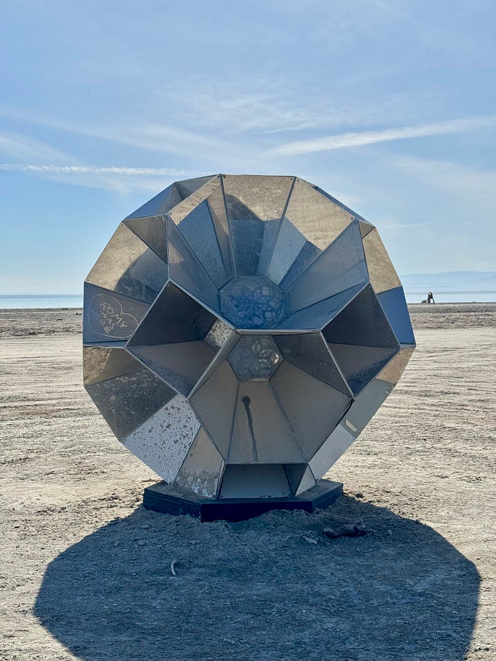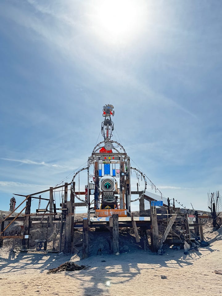 And there it was, the beginning of our Bombay Beach art experience. Scattered along the cracked, salty beach were dozens of assemblage artworks: sculptures, installations, and surreal constructions that ranged from absurd and whimsical to deeply poignant and prophetic.