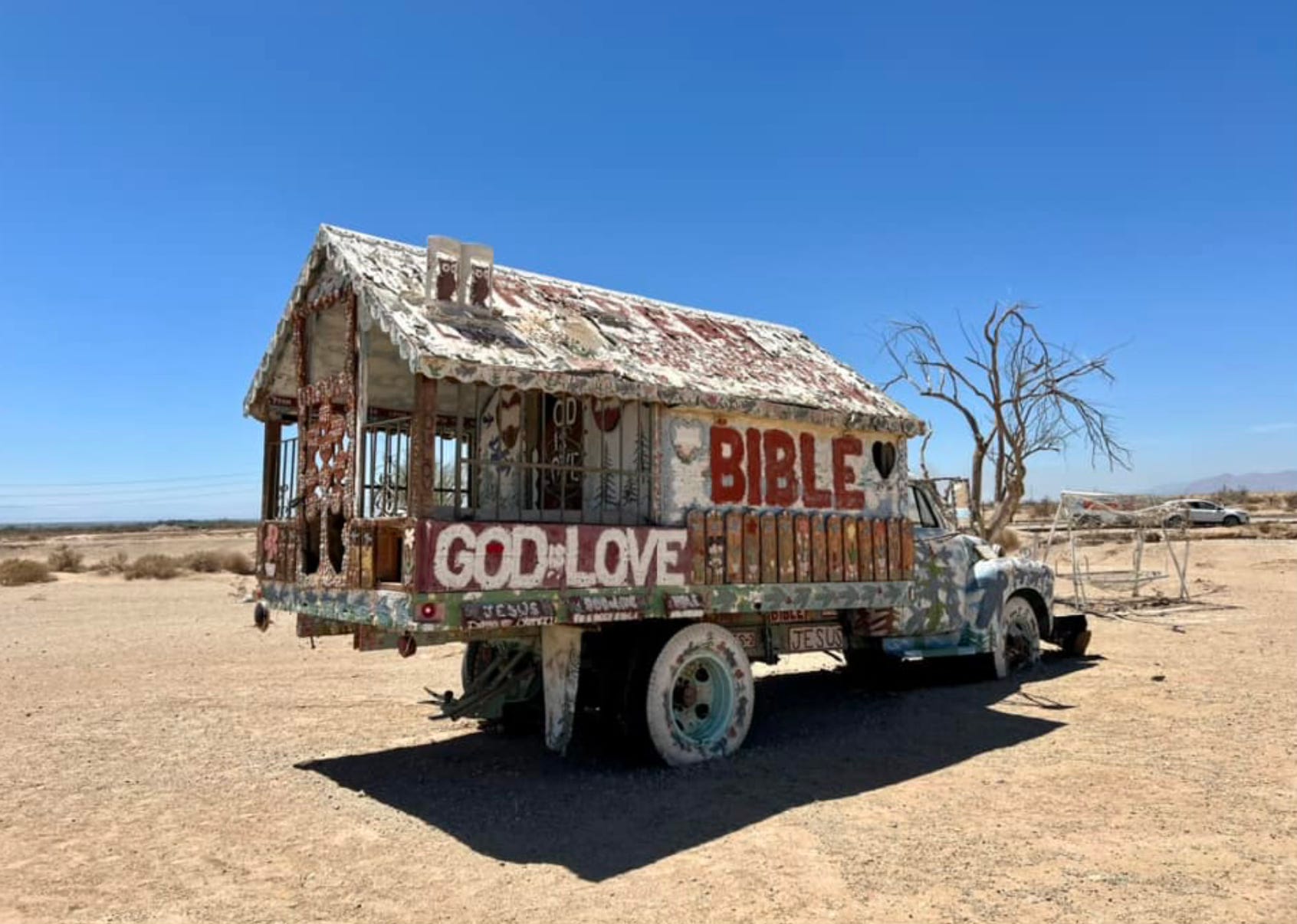 Leonard Knight, aka the “California Drifter” was a deeply religious man whose personal mission was to spread the word of God through his universal message of “God is Love.” Whoever your “God” might be, the sentiment was one of inclusion and devotion.